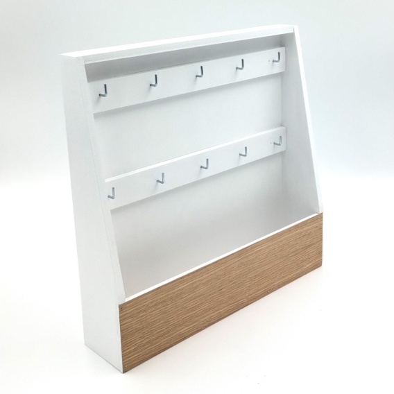 • Otwarta skrzynka na klucze, biała + dąb, wieszak na klucze 10 haczyków